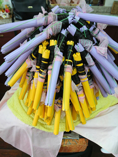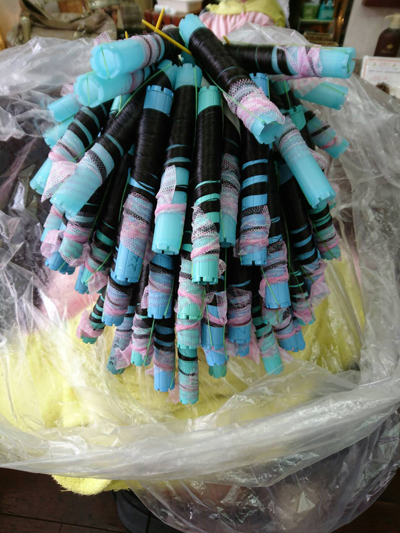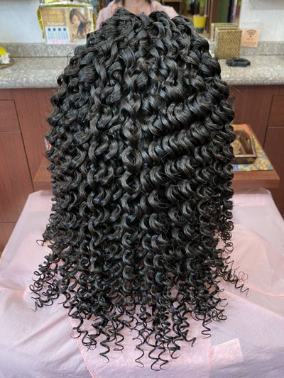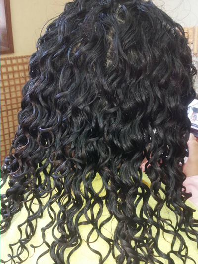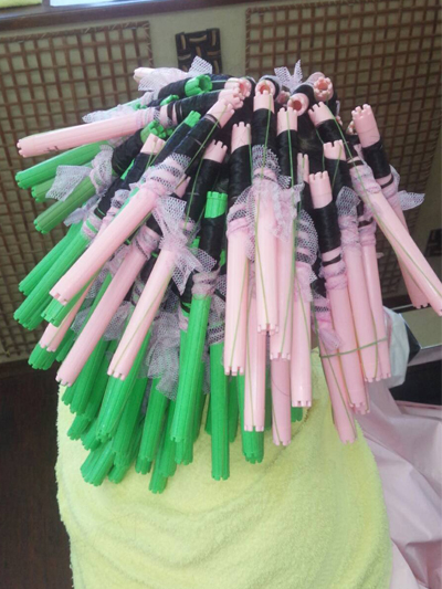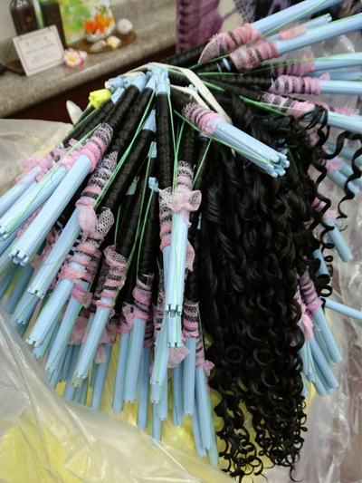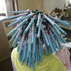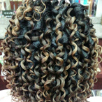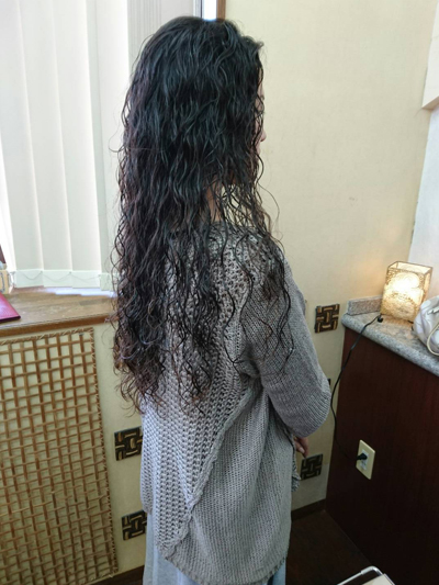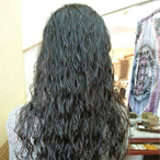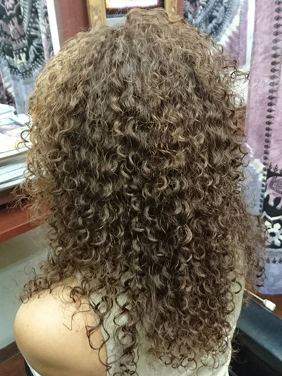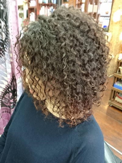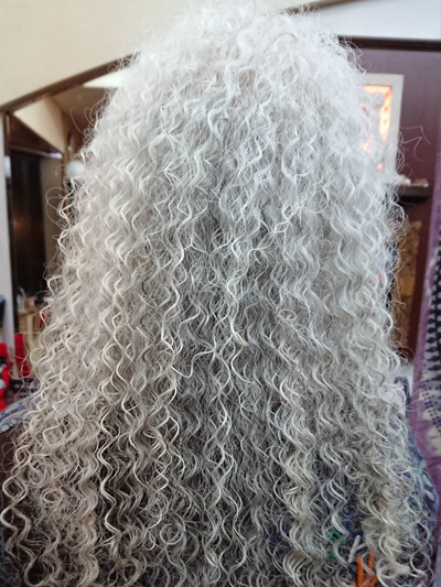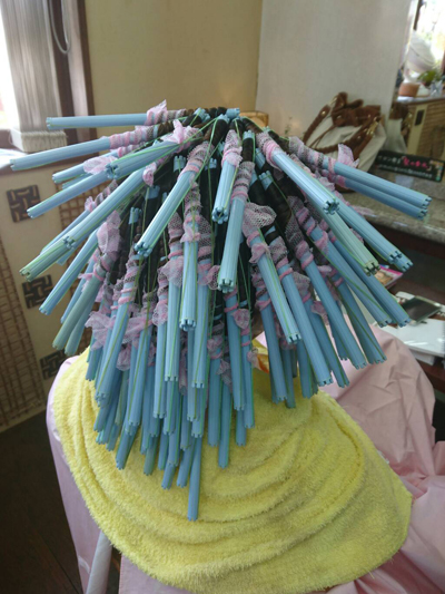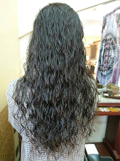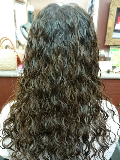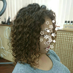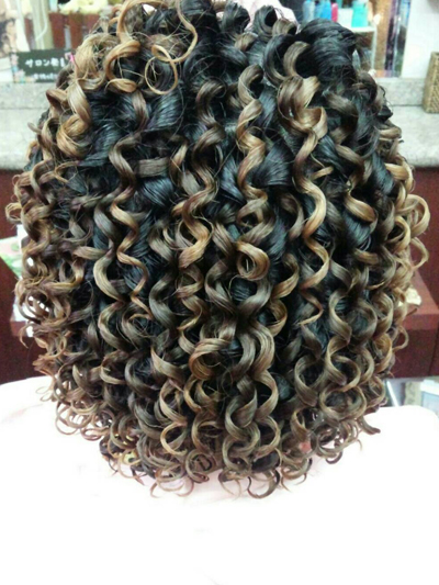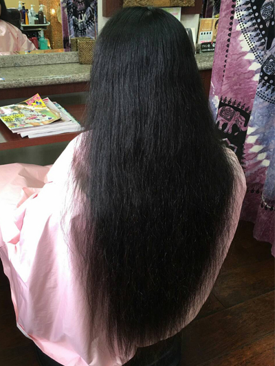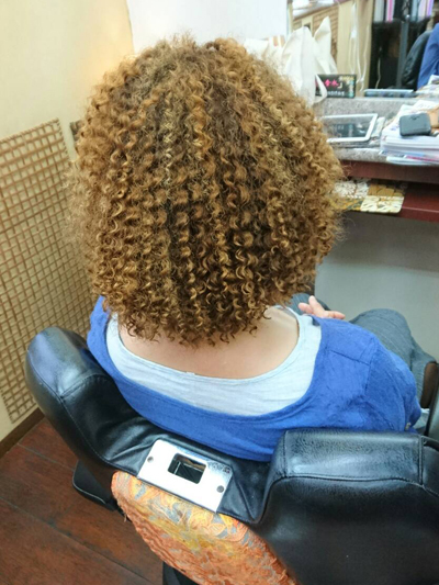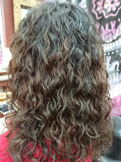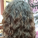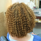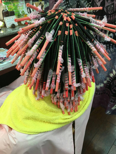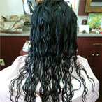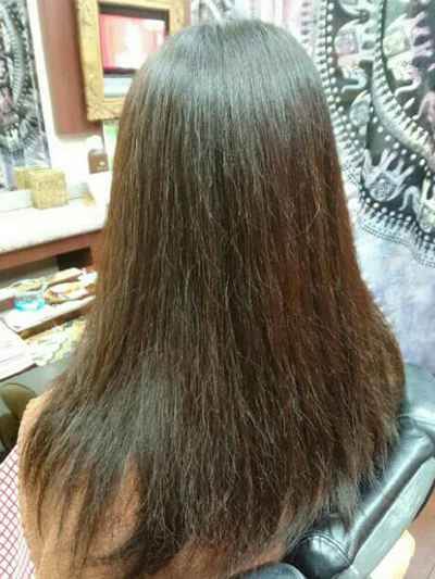 | ダメージのもっとも少ない酸性脱色剤で、白髪染めの色素を抜きます | 脱染後、イチゴカラーを全体に塗って、白髪をカバーしていきます | イチゴカラー後 明るさ重視のイチゴカラー |